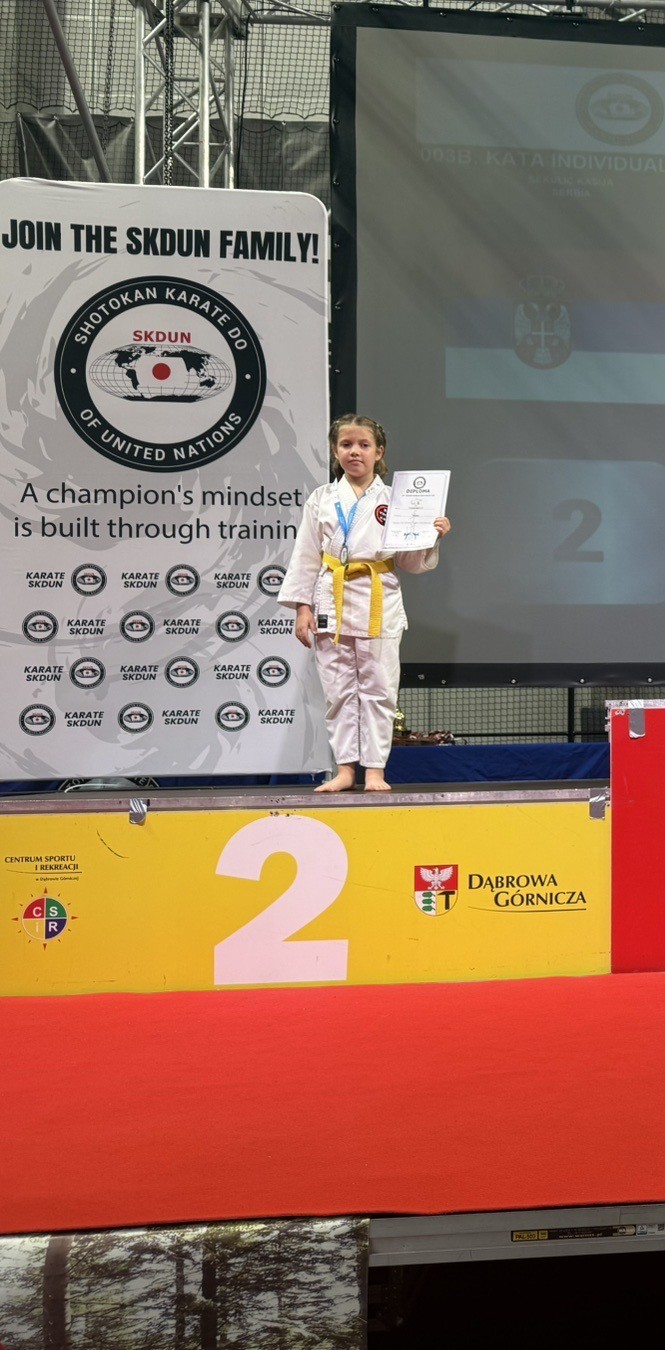 Ученица 3/1 Касија Секулић остварила је запажен успех, сребрну медаљу и друго место у категорији "Kata individual" и четврто место у категорији "kata duo tim" на међународном такмичењу 32. SKDUN Светском првенству у каратеу и 17. SKDUN Светском купу у каратеу које је одржано у октобру 2025. године у Пољској.