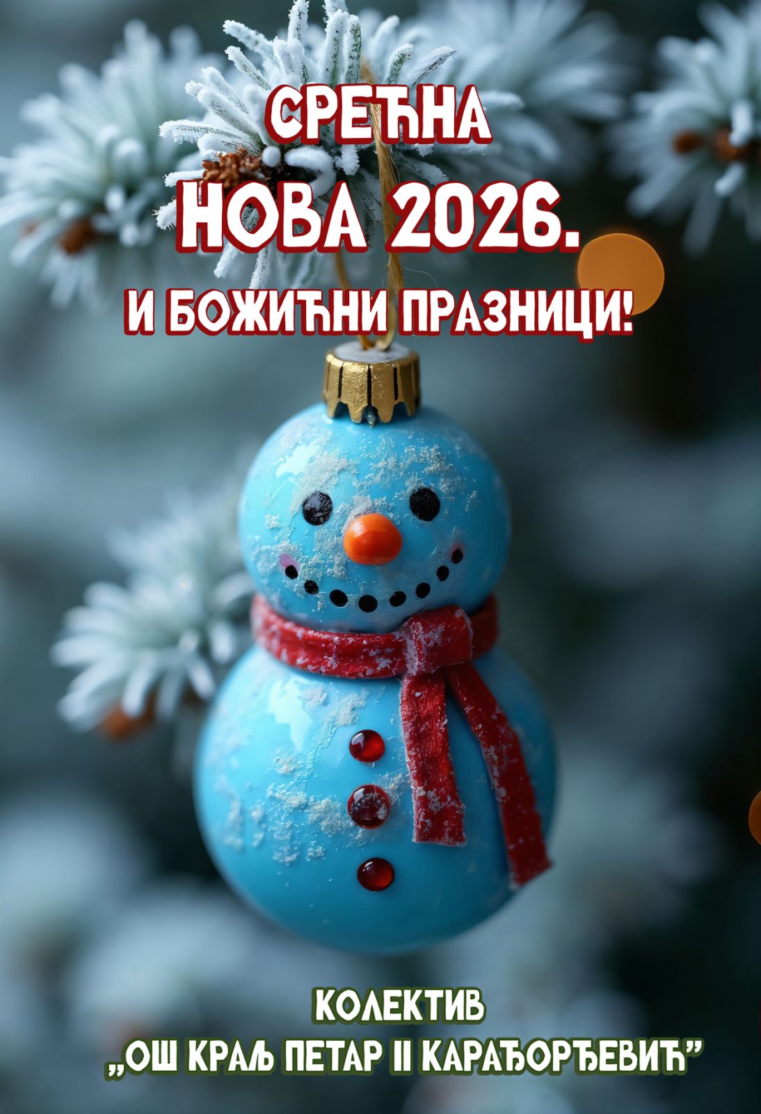 Желимо вам срећне празнике и пријатан одмор. Школски распуст почиње 31.12.2025. и траје до 18.01.2026. године. Први наставни дан је понедељак 19.01.2026. по редовном распореду.